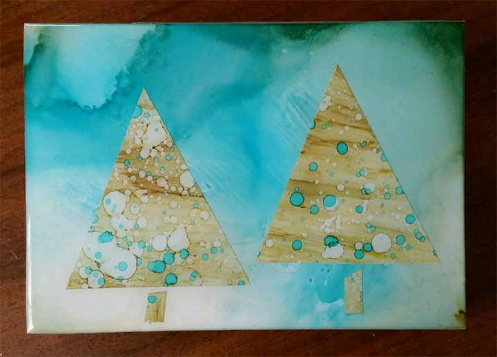 Beach Trees Alcohol ink on Yupo on cradled board, 5″ x 7″. Finished with Art Resin. **Not currently available**