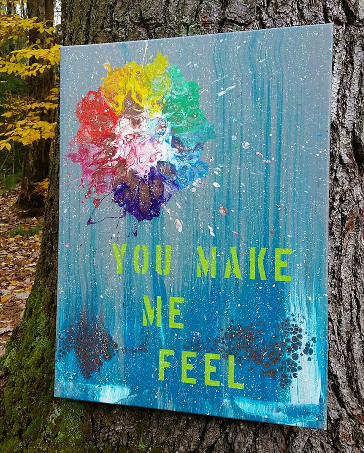 You Make Me Feel Acrylics on 18″ x 24″ gallery-wrapped canvas. Soon to be available at http://www.paintonpurpose.etsy.com