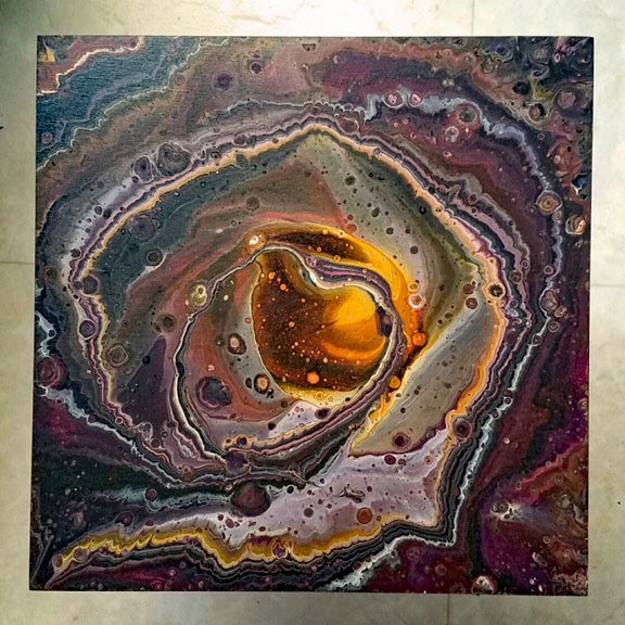 Acrylic mixed-media on 10″ x 10″ cradled panel.